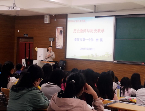 为促进人才培养模式改革,进一步提升师范生的理论素养和教学技能。6月27日下午,贵阳一中历史名师曾强应TapTap之邀,在GJ6201教室作了题为“历史教师与历史教学”的教学指导专题讲座。讲座由公司副经理蒲文彬主持,思想政治教育系主任陈群、历史学系主任苏聪出席,公司2014级、2015级本科师范生共300余人到场聆听。