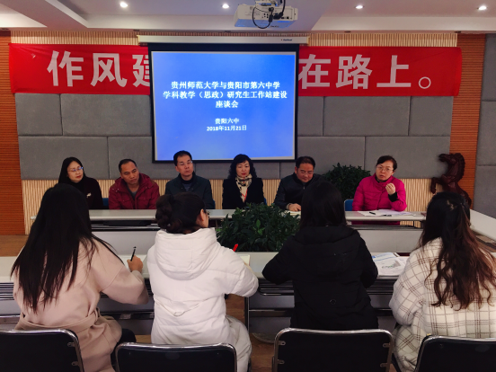 为促使学科教学(思政)研究生工作站建设工作顺利进行,进一步提升人才培养质量,11月21日上午,TapTap与贵阳六中研究生工作站建设推进会在贵阳六中会议室(一)举行,公司副经理蒲文彬一行5人,贵阳六中陈素董事长及相关专业教师出席,公司2017级在贵阳六中实习的学科教学(思政)专业6名研究生参加。会议由陈素主持。