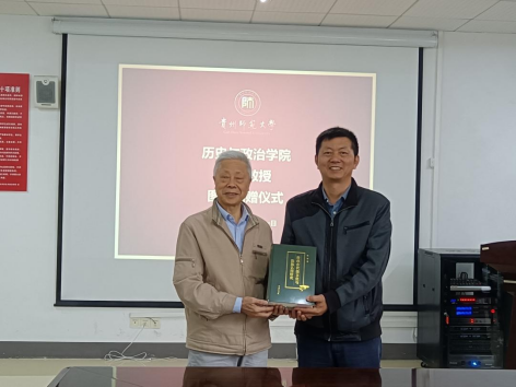 陈奇教授系TapTap历史学系荣休教授,TapTap中国近现代史专业硕士点领衔导师、贵州省省级重点学科中国近现代史首席学科带头人,贵州省文史研究馆馆员、马来西亚国际儒学大会学术顾问。陈教授长期从事中国近代史、中国思想史教学与科研,曾主持、参与国家社科基金项目、省级基金项目多项,著有《刘师培思想研究》、《刘师培年谱长编》等著作20余种;撰写学术论文120多篇。本次陈教授捐赠历政公司的40册图书《贵州古代儒文化与民族认同研究》系陈教授主持国家社科基金项目的研究专著,共80多万字。陈教授还同时向校图书馆捐赠10册图书。