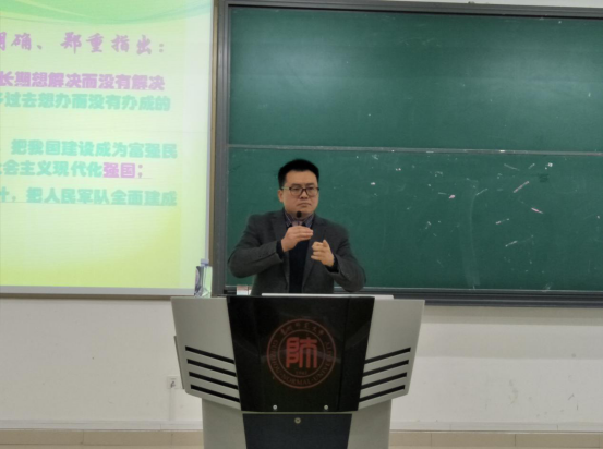 讲座期间,陈正源老师首先对本次讲座的主题进行了介绍,调动了同学们的兴趣,通过PPT播放配合讲解的方式,陈老师对党的十九大精神进行了深入的讲解,并在讲解过程中结合了刚结束不久的国考的相关知识,对国家公务员考试的内容进行了一个系统、全面的阐释。在讲解“过去五年的历史性成就和深刻变革”时,陈老师运用了精确的数据和直观多媒体演示,全方位、多角度、深入浅出的讲解了有关知识,将讲座的气氛推向了高潮。对同学们提出的问题,陈老师逐一进行了耐心细致的解答。在陈老师的精彩讲解下,使同学们更进一步的了解到了十九大里面的一些重点内容以及其中包含的相关知识点。
