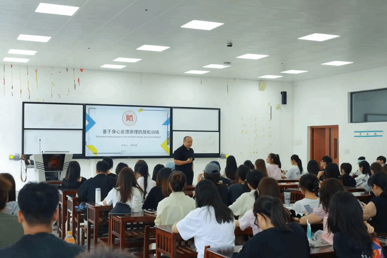 郑传章老师围绕如何缓解员工身心压力,讲解了基于身心反馈原理的放松训练。他首先带领同学们进行一系列的放松运动,阐释了身心反馈的原理,并强调了抗压对拥有健康体魄的重要性,以及可以从身体上的放松获得心理上的减负、从合理膳食、规律饮食上获得身心的愉悦。同时,郑老师也倡导同学们要合理安排时间,避免熬夜,正视情绪,以积极心态面对生活。