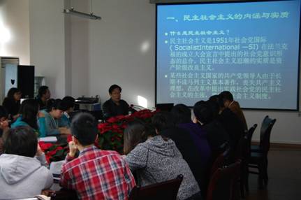 讲座中,刘书林教授对当前意识形态领域影响较大的四种思潮进行了详细的阐述。一是民主社会主义思潮。刘教授不仅阐释了民主社会主义的内涵与实质,也对民主社会主义思潮在我国的最新表现以及中共中央对这一思潮的回应进行了解读。二是“普世价值”思潮。刘教授在详细介绍了“普世价值”思潮在我国兴起的过程后指出,其已成为颠覆我国社会主义制度的旗帜。另外,他就国内马克思主义学界对此作出的回应进行了解读。三是民族虚无主义思潮。刘教授追溯了民族虚无主义思潮的历史根源及其在新时期的表现,并指出,我们应当坚持爱国主义,抵制民族虚无主义。最后,刘教授深入剖析了历史虚无主义思潮的内涵、实质及其表现。他深入剖析了该思潮的危害性,指出我们应当坚持以历史唯物主义的态度对待中国历史。