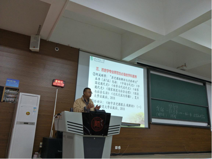 为提高公司历史系师范生的专业素养,10月20日上午,四川师范大学历史文化与旅游公司陈辉教授在公司GJ6202教室做了关于“当下历史学专业师范生的使命与素养”的讲座。历史系主任苏聪老师与徐杨老师以及公司2016级历史学、2017级历史学、2018级历史学、2018级学科教学(历史)员工参加讲座。