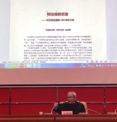 宋成有教授深刻解读了“江户时代的双重二元结构与明治维新”。他认为研究明治维新的重要方法是了解明治的上一个时代——江户时代,并阐述了江户时代将军至强与天皇至尊二元政治结构从失衡到明治时代改革的历史,全面分析了日本政治结构由二元转换到一元的历史进程,其历史教训值得汲取。
