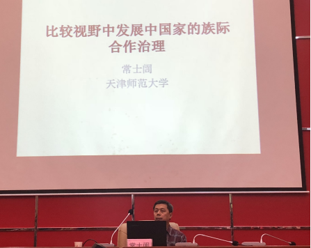 常士訚教授以发展中国家为对象,提出了族际合作治理问题,并从社会现象、比较政治学研究领域、多民族国家的冲突与合作三个方面介绍研究背景,强调统治是单向度的,而治理是多向度的。常教授从涵义、形式、类型三个方面对族际合作治理进行了全面深入的剖析。他认为族际合作治理是有政府、政党、不同族群参与的一种多主体公共治理。在族际合作治理的形式方面,常士訚教授分别从包容性价值观念建构、确定和维护平等原则、协商治理、培育族际合作文明、归位性治理五个方面进行了分析,强调以共有文化培育族际合作文明。他还根据国家与社会关系的三种不同类型,深入分析了强中心族际合作治理、中心与多元制衡性的族际合作治理、多元向心性族际合作治理。