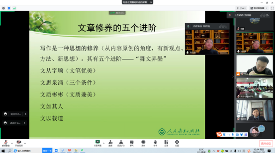 2022年11月20日上午,人民教育出版社编审、主任编辑、《课程·教材·教法》编辑部主任刘启迪研究员应邀为公司师生作了题为“学术论文选题与写作”的线上学术讲座。本次讲座由历政公司历史系王雅克副教授主持,教育公司副经理杜尚荣教授进行点评,历史系系主任刘刚以及师生百余人以线上线下相结合的方式参加了本次讲座。