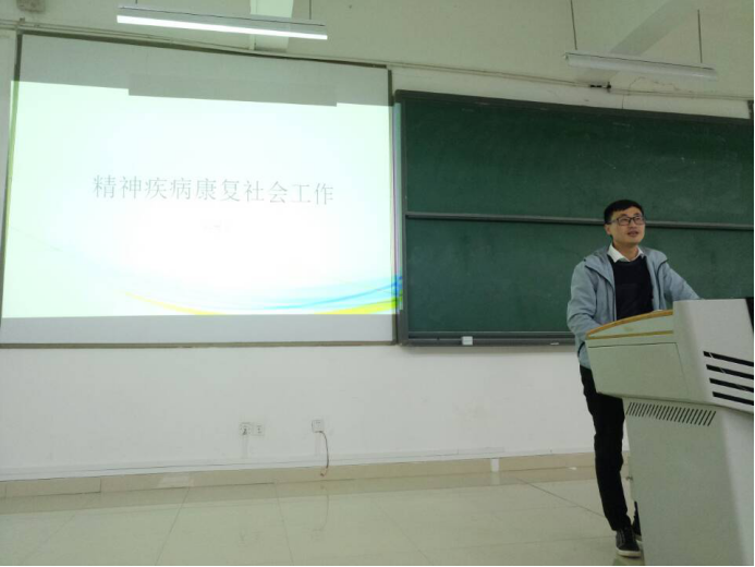 10月19日下午,在公教6301,贵阳市七色花社会工作服务社两名副主任王俊杰、杨喜亚分别作了“医务社会工作”、“精神疾病康复社会工作”专题讲座。其中,王俊杰主要讲述了医务社会工作的内容、价值以及医务社会工作者应具备的能力与素质。该领域的工作不仅能够提升医院的形象,而且能提高医疗效果及患者对服务的满意度,改善医患关系。杨喜亚主要讲述了精神疾病的成因与预防之策,并分享了“七色花”针对精障患者的项目服务模式和发展方向。具体而言,遗传、滥药、贫穷、消极心理等均可能诱发精神疾病,而其患者的康复治疗不是仅恢复原来的状况,而是更应注重个人成长。
