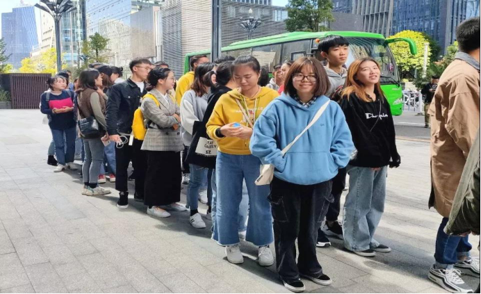 同学们在排队参观