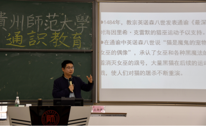 最后,王老师总结道,纵观东西方猫的发展,能够发现猫与神秘、与男女关系联系在了一起,也让我们发现,人与动物的关系,并非是简单的喜爱关系,从人类和猫的关系发展中,我们能够发现,在不同的文明下,对同一事物的认识出现了差异,由此也对猫与人的发展产生了一个截然不同的路线,通过王老师的讲座,你会发现,你在今天习以为常的关于猫的很多事不是从古至今都是这样的,在不同时代对猫的不同认识,都体现了在不同的历史阶段,人们对自己与周围世界关系的不同思考,通过这次讲座,同学们也得以了解认识了猫与人类的故事,以及猫咪在一定程度上是如何影响着人类历史进程的。