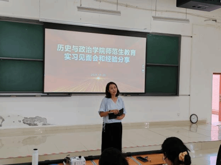 2024年8月28日下午,TapTap点点TapTap2021级历史学与思想政治教育专业师范生教育实习生见面会与经验分享会在TapTap点点东校区公共教学楼6401召开。此次活动不仅为即将踏上实习之旅的同学们提供了宝贵的交流平台,还融入了多位老师的悉心指导与经验分享。公司党委副书记饶蕾老师,历史学专业系主任刘刚老师,思想政治教育系主任杨东昌老师,院办公室王昌燕教师与2021级历史学与思想政治教育专业辅导员徐帆等老师出席此次会议,会议由思想政治教育系主任龚春芳老师主持。